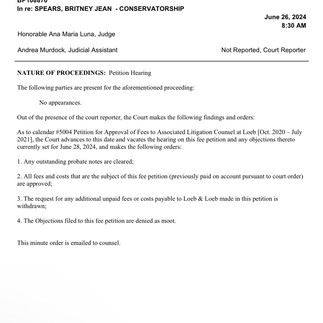Nos documentos de hoje, que se a data de 29 não estiver equivocada como final, serão os últimos do caso, podemos ver alguns acordos financeiros entre as empresas que queriam que Britney os pagasse - as que trabalhavam contra ela nos 13 anos de curatela.