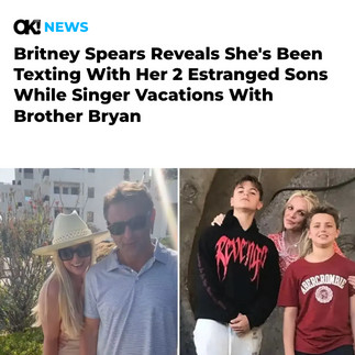 *De acordo com a revista de fofocas norte-americana OK Magazine, Britney Spears está trocando mensagens de texto com seus dois filhos afastados enquanto está de férias com o irmão Bryan.